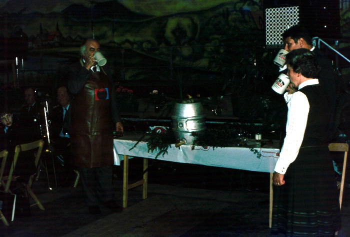 Das erste Faß Freibier wurde von der Kreissparkasse spendiert, weitere folgten in unterschiedlicher Literzahl (meist war es eine Steigerung nach oben) durch Herrn Messerschmidt von der Heinrich Nagel
