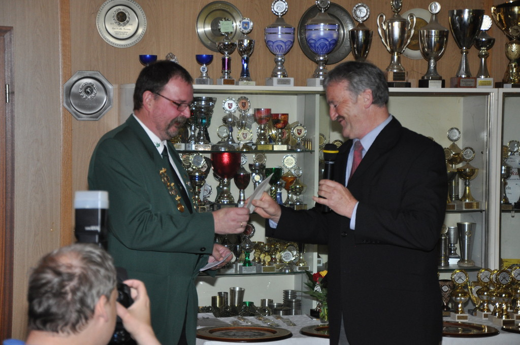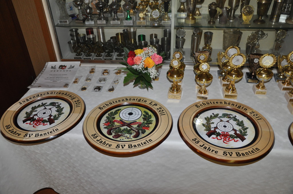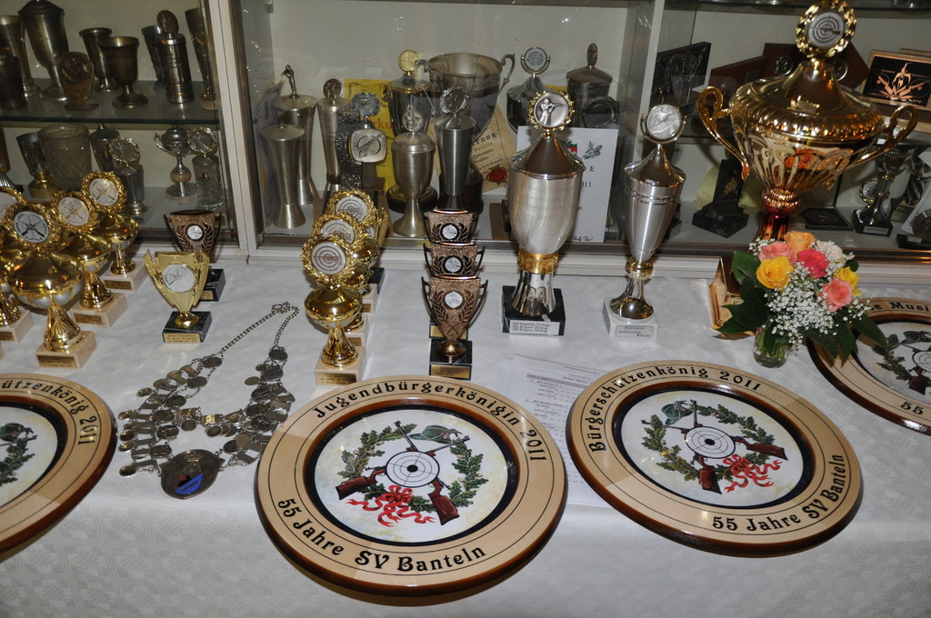 An diesem Abend wurden auch die Pokale an die Sieger und Platzierten des Schießens für die örtlichen und auswärtigen Vereine sowie die Ehrenscheiben für das Bürger- und Königsschießen überreicht.