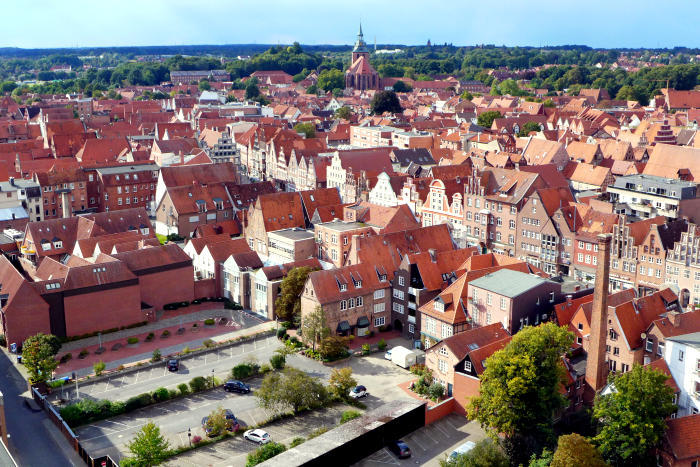 die Dachlandschft Lüneburgs mit ihren vielfältigen Sehenswürdigkeiten lag uns zu Füßen