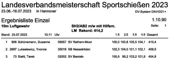 war die Qualifikation für die Landesmeisterschaft in Hannover erreicht. Die Landesmeisterschaft wurde automatisch von der Verbandsjugendleistung gemeldet. Nach einem vorausgegangen Probeschießen,