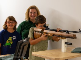 16 Kinder nahmen teil und konnten am Lichtpunktgewehr das sportliche Schießen probieren. Um sich jedoch bei der Siegerehrung gut zu platzieren, galt es auch, an der Dartscheibe und beim Pfeilwerfen auf Luftballons treffsicher zu sein. In den Pausen konnte gekrökelt werden.