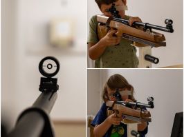 Lichtpunktgewehr. Der Schießsport fördert die Fokussierung, Konzentration und Atemtechnik. Ein sicherer Stand und die richtigen Anweisungen von Trainerin Andrea Kleinert sichern