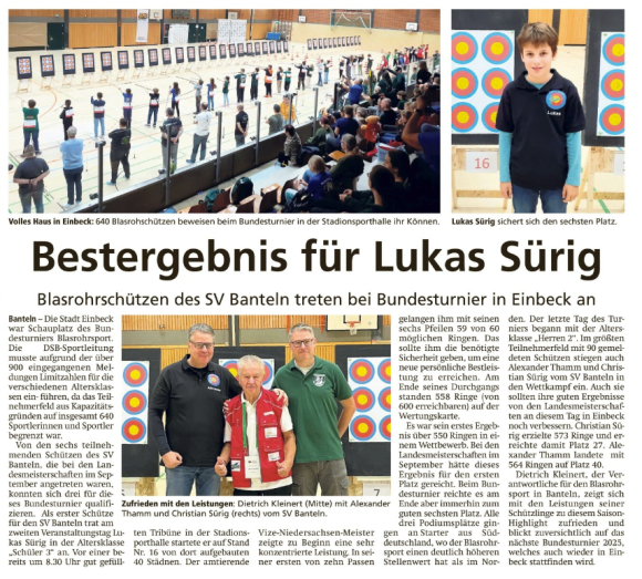 Bundesturnier Blasrohrsport in Einbeck LDZ
