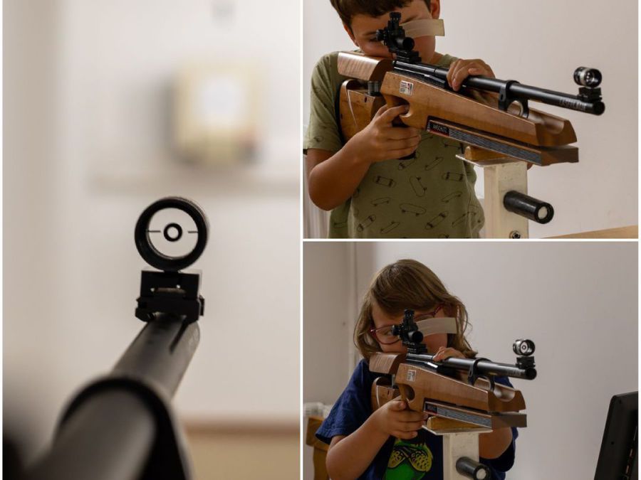 Ab 12 Jahren auch mit anderen Sportgeräten wie z.B. Luftgewehr/Luftpistole und auch Kleinkaliber unter fachmännischer Anleitung.